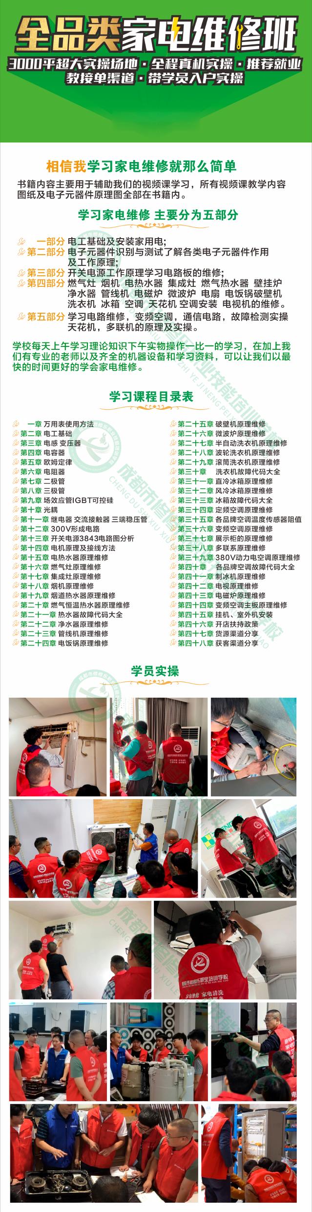? ? ? ? 成都市修修樂職業技能培訓學校是一所由市場監督管理局和人社局聯合批準登記的民辦職業技能培訓學校,主要專注于家用電器產品維修工、家用電子產品維修工、制冷空調系統安裝維修工、燃氣具安裝維修工、家電清洗工、家政服務員、養老護理員、育嬰師等專業的職業技能培訓,是國內為數不多的集全品類家電維修、清洗、安裝、家政、護理為一體的一站式職業技能培訓學校。? ? ? ? 學校擁有雄厚的師資力量,既有20年以上家電維修經驗豐富的專家級實操老師團隊,又有芯片級電路板維修等方面造詣頗高的理論老師團隊,同時也擁有家政、育嬰和護理方面的高級講師數名,學校所有學員培訓的教學大綱、計劃和內容均按國家頒布的《職業技能標準》要求嚴格執行,教學方式遵循30%理論學習+70%動手實操,學校頗具規模和實力,擁有12間計600平的多媒體理論教室以及國內少有的1500平配套設施完善的實操區域,可一次性提供100人實訓實操的教學工位,實操區內各種維修工具、家政工具及各類模型器材完備,擁有覆蓋國內市場90%以上的最新大小家電及燃氣具實操產品近500余臺(套),所有實操設備均實現水、電、氣三通,完全模擬家庭日常使用狀態及故障展示,特色是,校內擁有其它培訓機構不具備的高層房屋模擬場地,精確還原高空作業(空調)安裝及維修場景。? ? ? ? 學校實操按培訓品類共分為6大區域①制冷家電維修實操區(冰箱/空調等)②廚衛小家電維修實操區(洗衣機/廚房電器/熱水器/各類小家電等)③黑色家電維修實操區(液晶電視/音響/蒸烤箱等)④家電清洗實操區(空調/洗衣機/冰箱/地暖/熱水器/煙機灶具/集成灶等)⑤各類產品安裝實操區(空調/移機/彩電/廚房電器/衛浴/水電/凈水等)⑥家政服務及護理實操區。自建校以來,以雄厚的師資力量,大量齊全的實操設備,以同行業不具備的“超大實操場地”“超多實操設備”“水電氣三通”“高空模擬安裝”等實操優勢獲得了眾多學員的好評,甚至吸引了不少在其它培訓機構花了學費又沒有學好的學員重新回爐到我校學習。? ? ? ? 經多輪考察和專家組評估,現我校已成為四川省家用電器服務維修行業協會培訓基地和戰略合作伙伴,同時也是四川多家一線品牌維修安裝人員的代培訓機構,凡經我校培訓畢業的學員除自主創業外,一律由家電協會推薦就業,就業單位均是一線大品牌的售后服務單位(如,美的、海爾、格力、長虹等),月收入過萬不是夢,優秀的學員還會重點培養成為各服務網點負責人。? ? ? ? 歡迎想學一技之長,想改善就業,想提升創業能力,想快速擁有好工作的有志之士,到我校參觀考察學習!