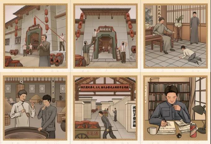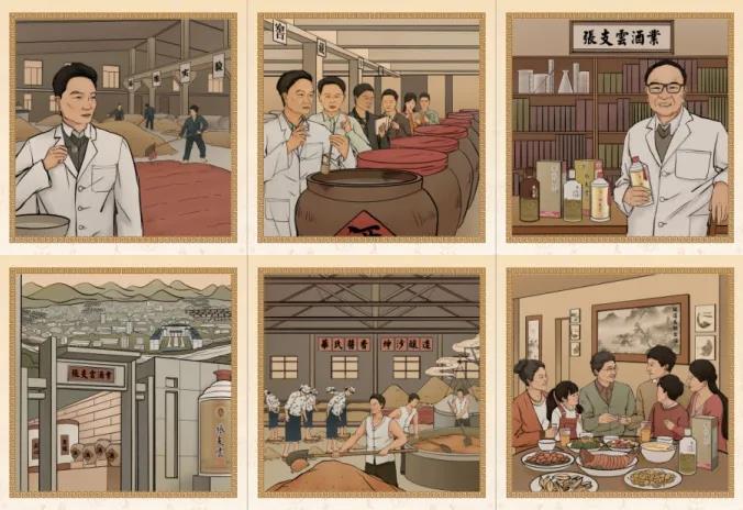 我們在這款特別紀念酒的包裝設計上做出了一些改變,一套十二支,一支一幅插畫,每一幅都講述了一個歷史故事,通過這一幅幅畫面將泰斗的生平娓娓道來,把張支云酒的歷史與文化融入其中。