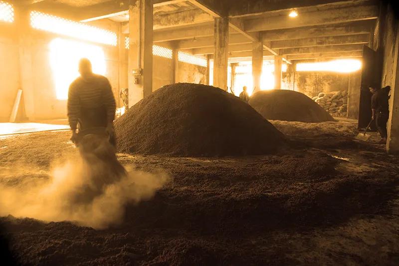 世間美酒,醬香白酒工藝最復雜。下沙-蒸糧-發酵-取酒,這些看起來簡單的字眼背后,共有九個生產單元,30道工序、165個環節,環環道道皆在濕熱的環境下進行,需要釀酒人365個日夜的虔誠侍奉。